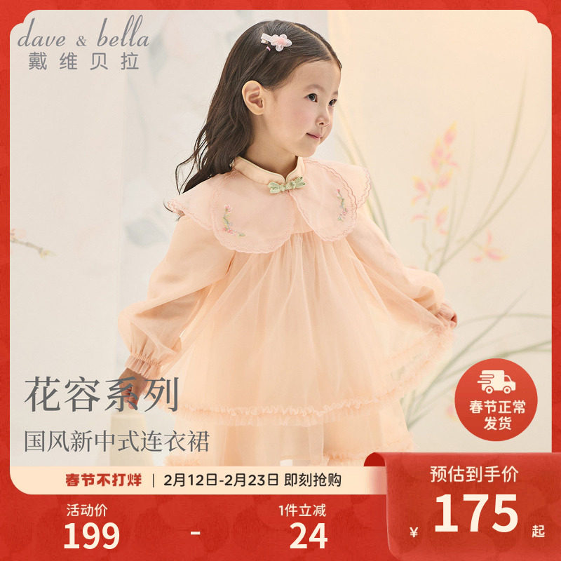 戴维贝拉儿童连衣裙女童2026新款中国风网纱裙女宝宝裙子春装A类