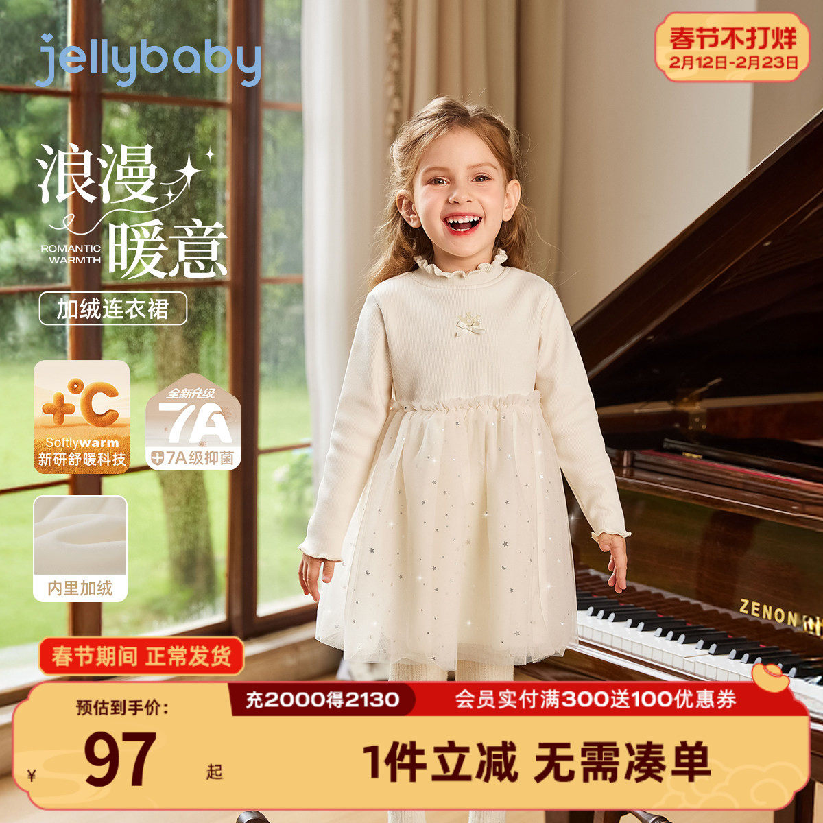 [抗菌]女童连衣裙宝宝秋冬新款加绒蓬蓬纱裙儿童公主裙新年演出服