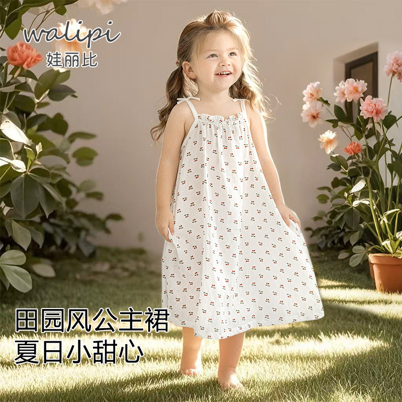 娃丽比女童连衣裙夏季纯棉薄款儿童裙子女宝宝裙子吊带背心公主裙