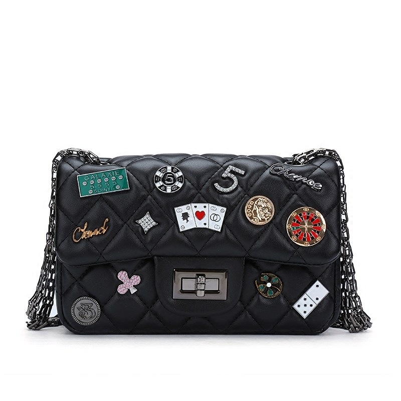秋冬小香风徽章包包女包新款2025爆款轻奢高级感斜挎菱格链条包小