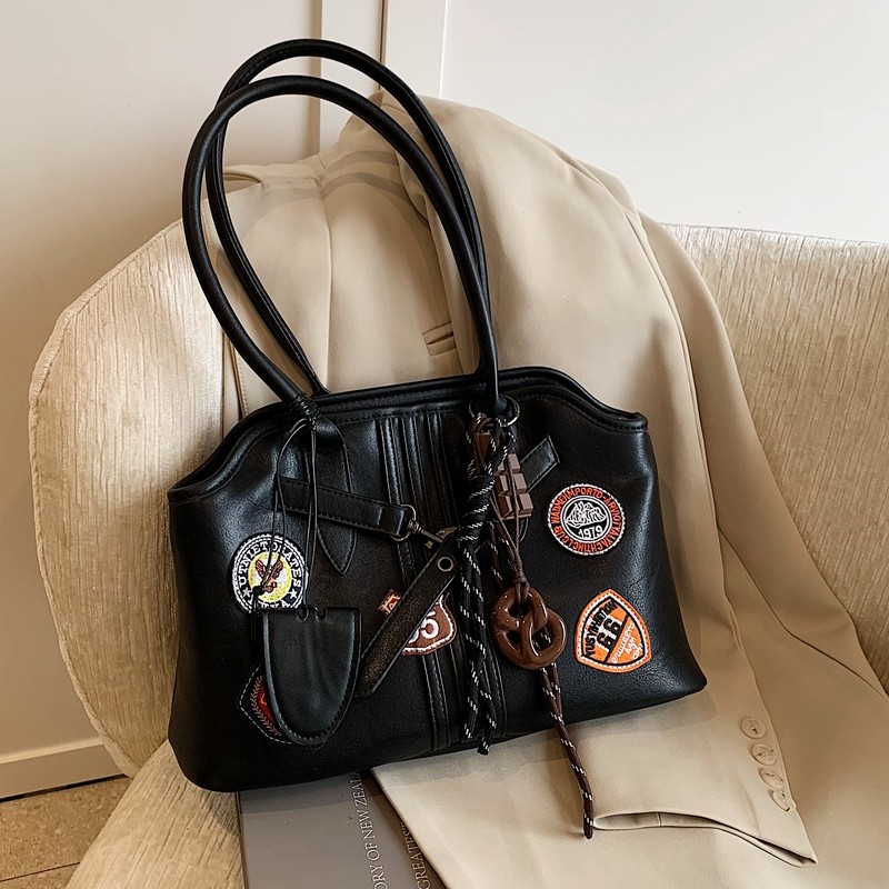 美式复古大容量包包女2026新款春夏流行单肩腋下包通勤手提徽章包