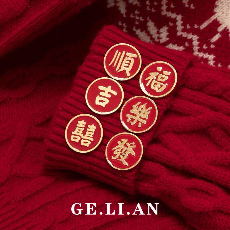 中国风好运祝福文字胸针喜发福乐顺吉徽章包包别针配饰女新年礼物