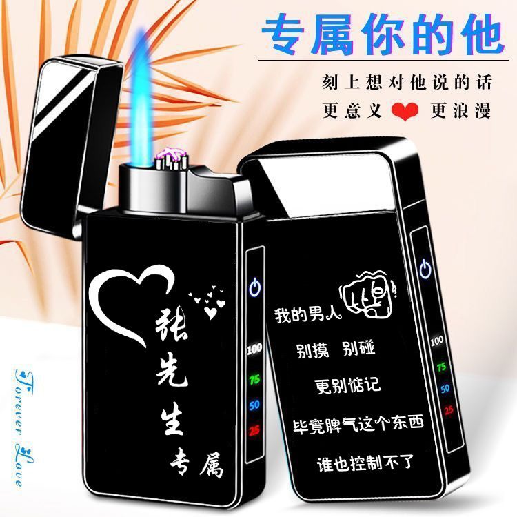 正品充电打火机防风创意个性网红男士制刻定字印送照片高档物男友