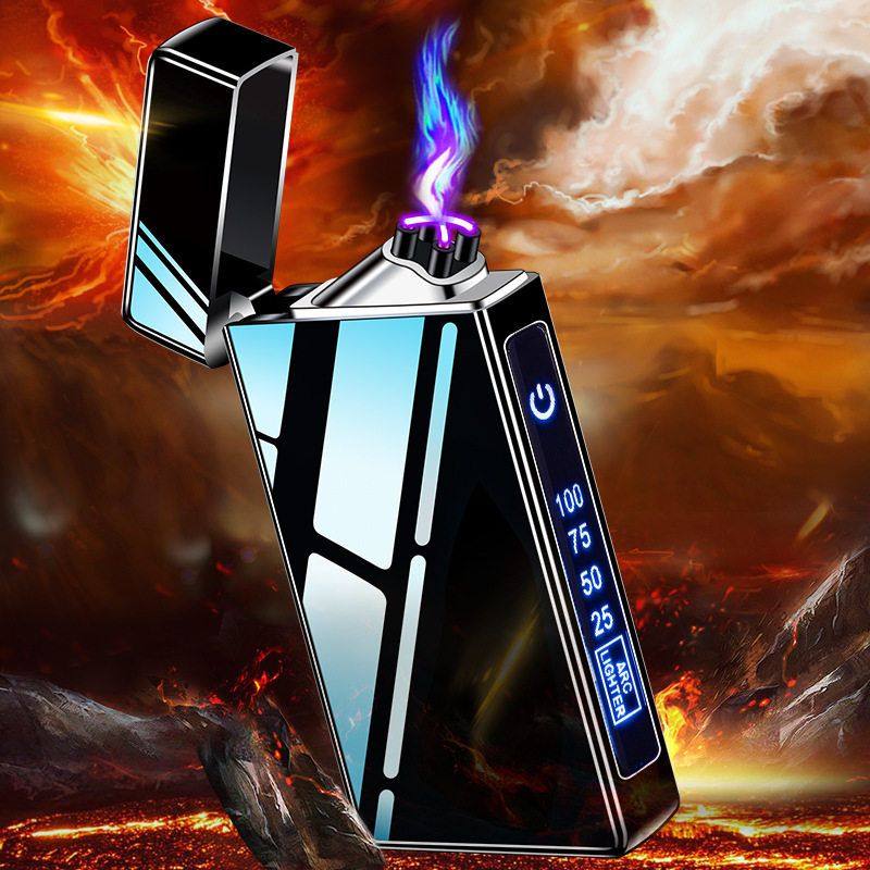 高档朗声创意网红双电弧充电打火机防风个性定制刻字照片送男友潮