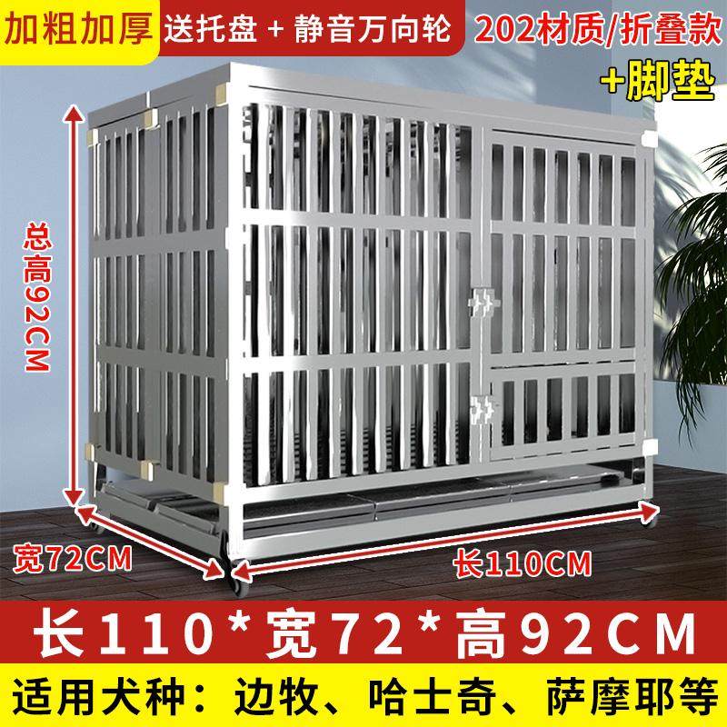 不锈钢狗笼大型犬专用金毛宠物狗窝加粗方管折叠狗笼子中型犬边牧