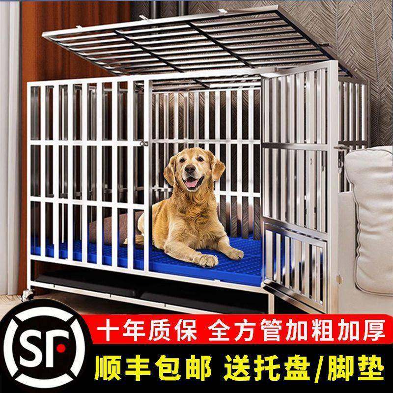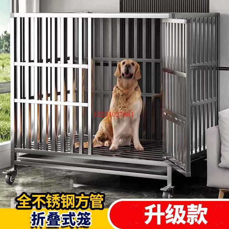 加厚不锈钢狗笼折叠款全方管大型狗窝室内带厕所拉布拉多金毛笼子
