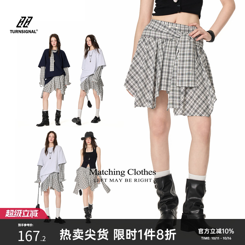 TurnSignal潮牌不规则格子半身裙女秋季2025新款格纹a字短裙半裙