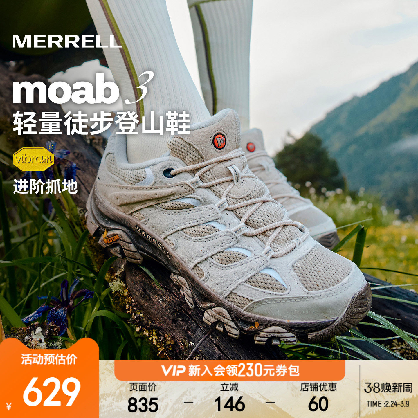 MERRELL迈乐MOAB3专业登山徒步鞋男女防滑耐磨抓地户外爬山运动鞋