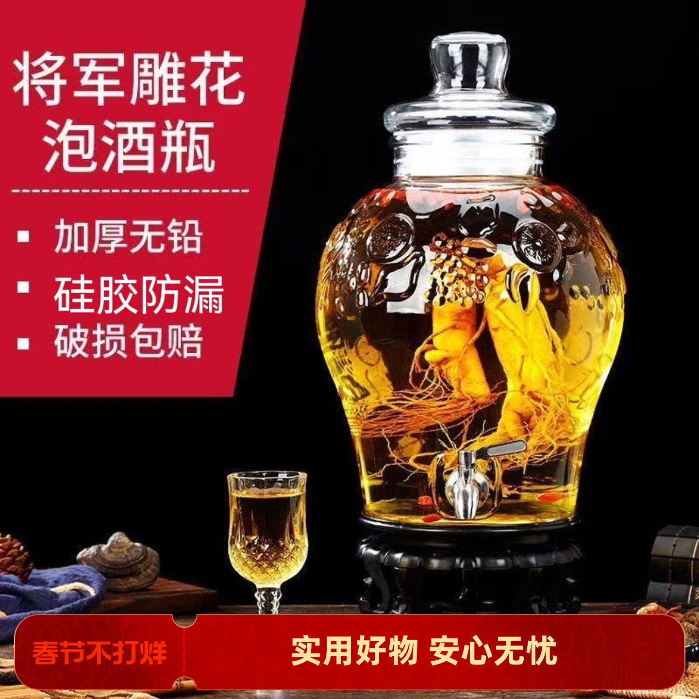 居元素泡酒专用酒瓶人参泡酒玻璃瓶加厚带龙头家用高档密封泡酒罐