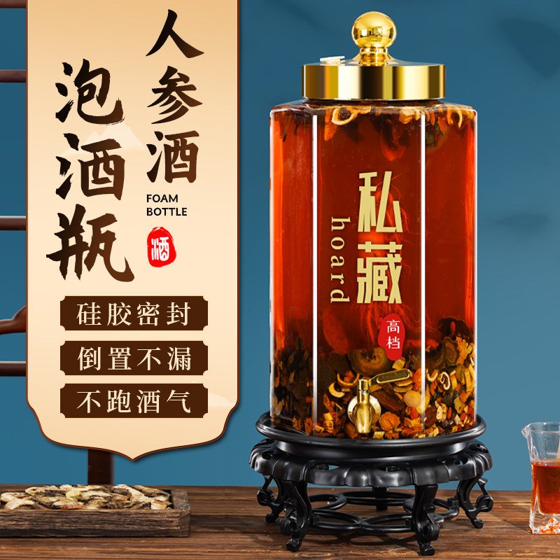 泡酒玻璃瓶家用高档密封容器10斤人参药酒罐酒坛子带龙头专用酒瓶