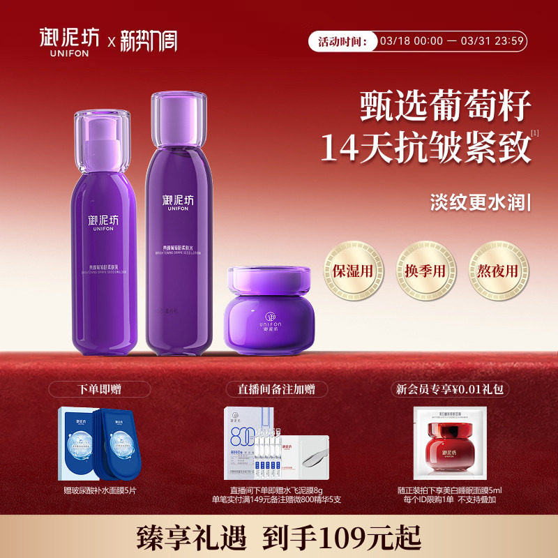 【下拉详情跳转享优惠】御泥坊黑参胶原水乳套装抗皱紧致保湿补水