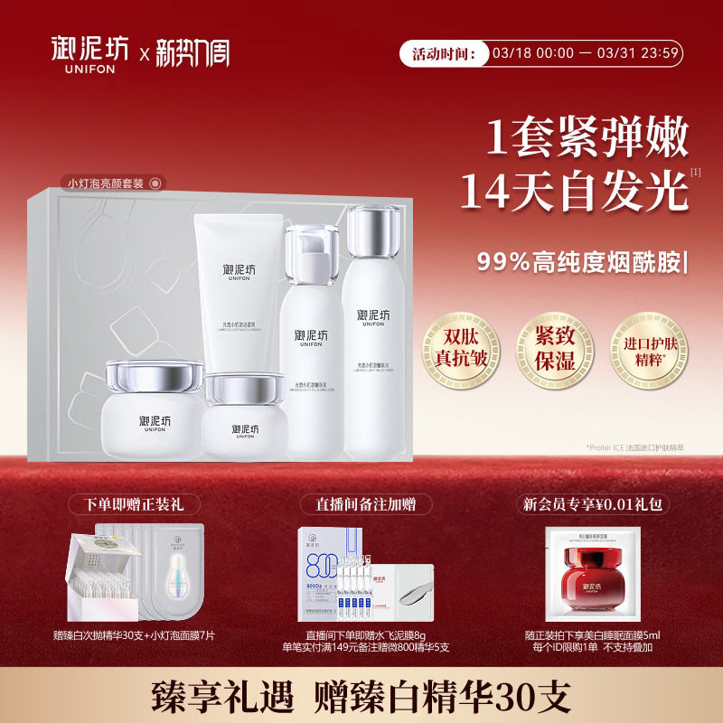 御泥坊光感小灯泡亮颜套装五件套洗面奶洁面乳嫩肤水面霜乳液单瓶