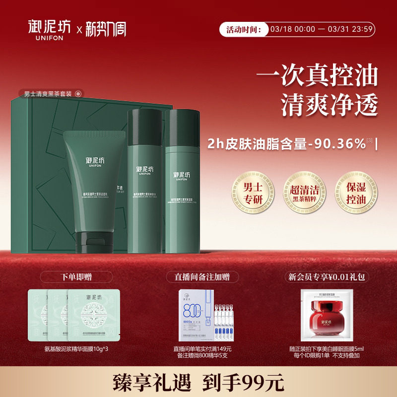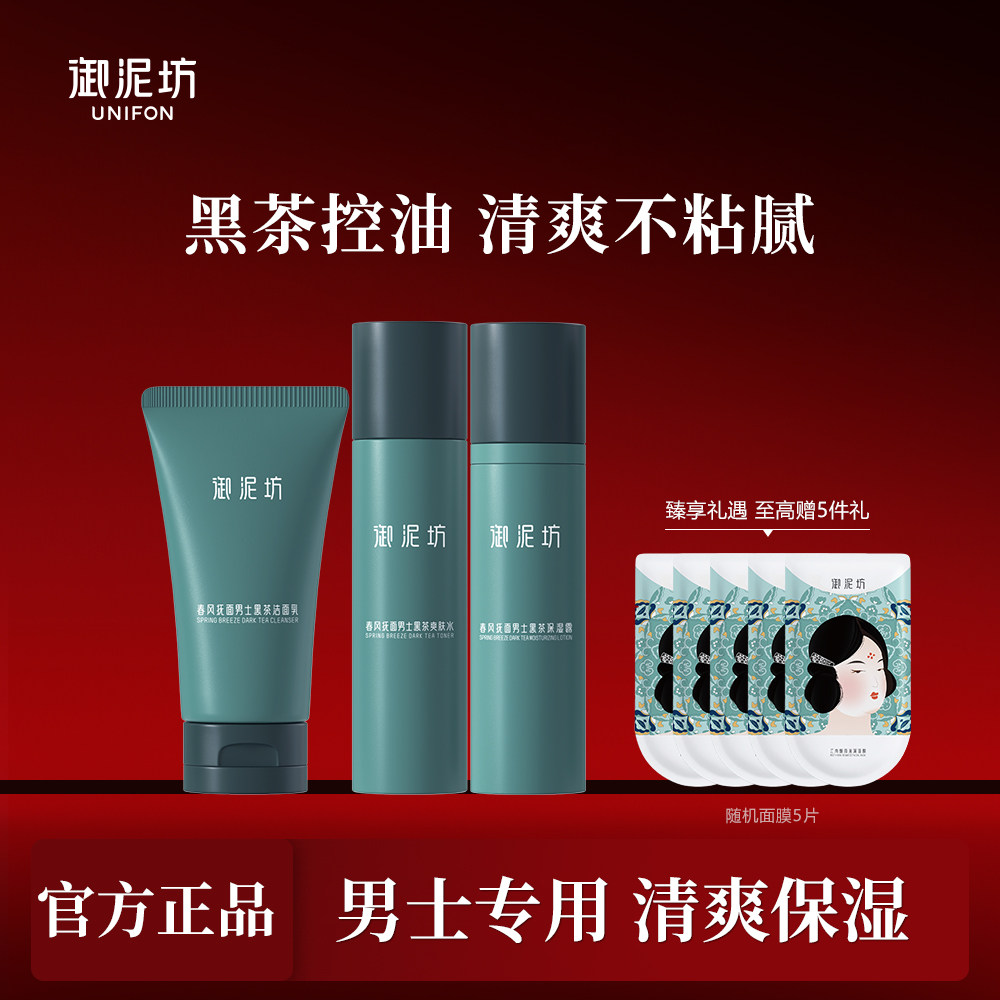 【下拉详情跳转享优惠】御泥坊男士清爽黑茶水乳套装礼盒控油保湿