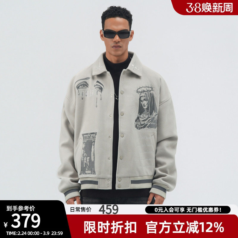 [侯明昊同款]404MOB重磅毛呢刺绣棒球服情侣外套男女美式秋冬夹克