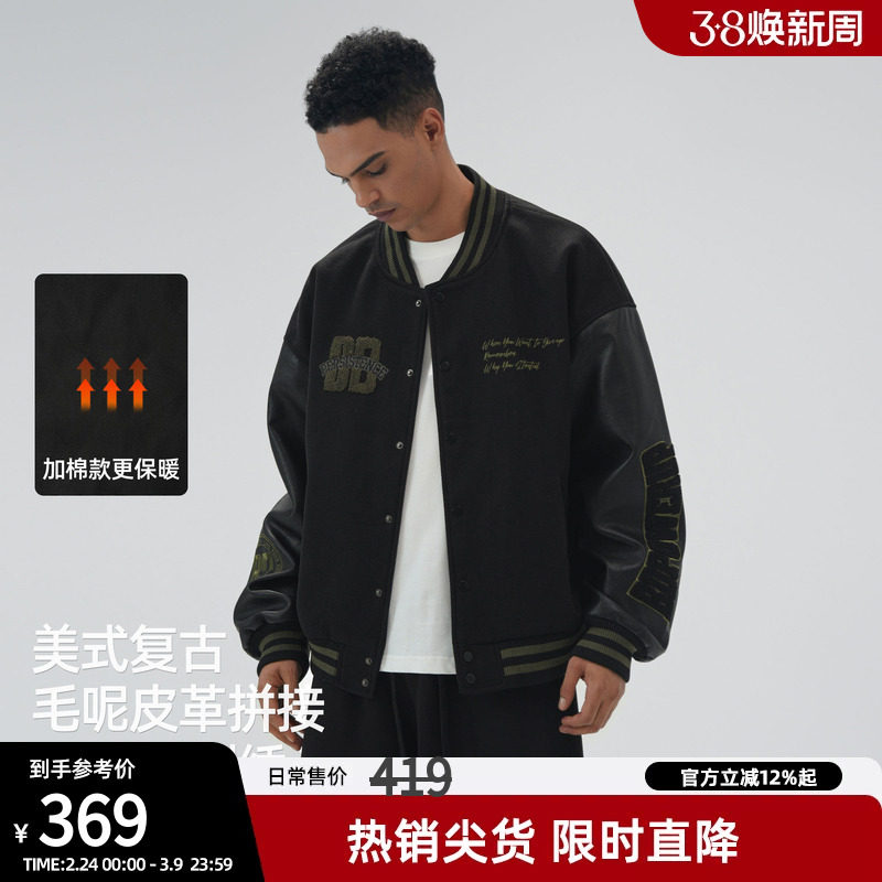 BODYDREAM重工3D立体刺绣皮革棒球服男2026春季新品毛呢外套夹克