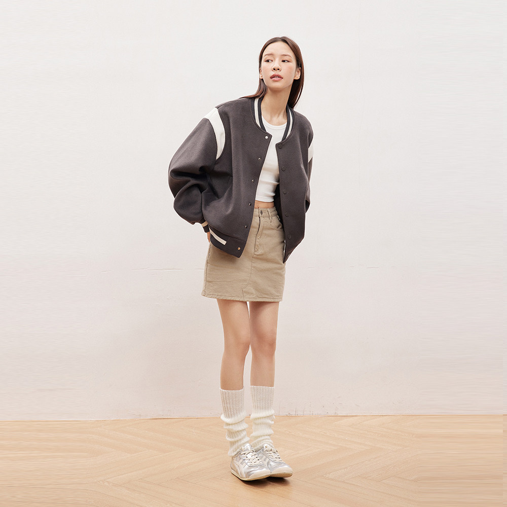 马登美式学院风棒球服夹克复古撞色刺绣外套百搭毛呢短上衣秋季女