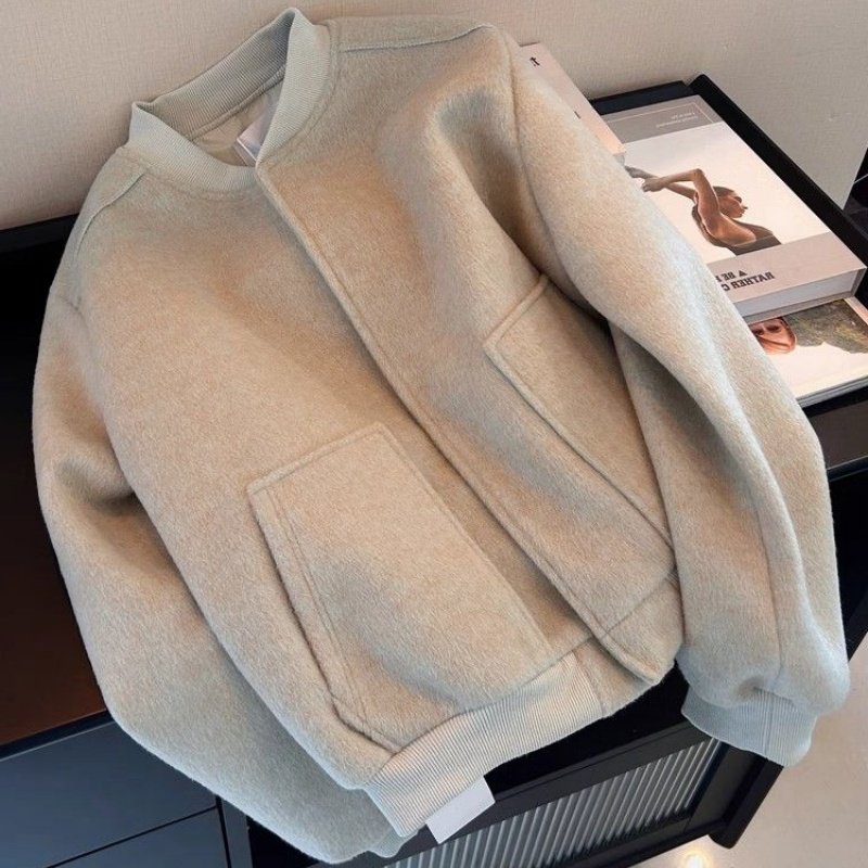 aaaaxbbb hey joy纯色短款毛呢棒球服女时髦宽松显瘦外套