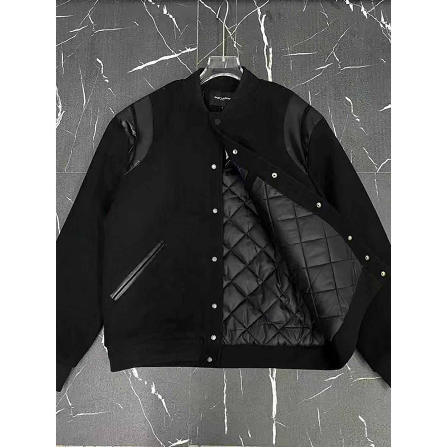 Toos.21AW 重磅美金毛巾植绒刺绣美式pu皮袖毛呢棒球服夹克外套