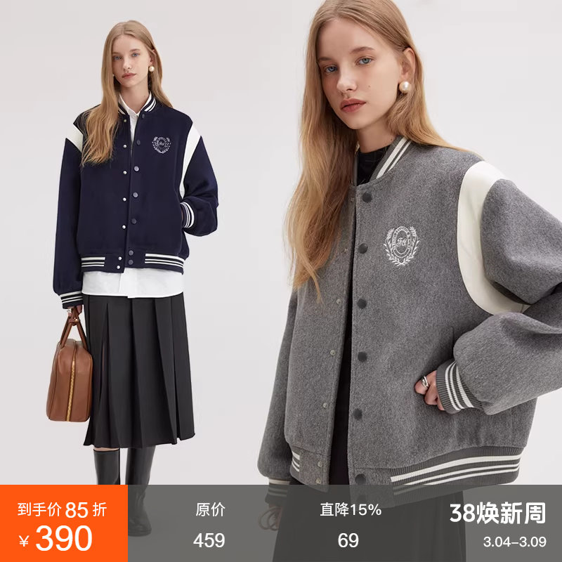 【特价外套清仓99】 美式学院风毛呢棒球服外套女春秋款宽松夹克