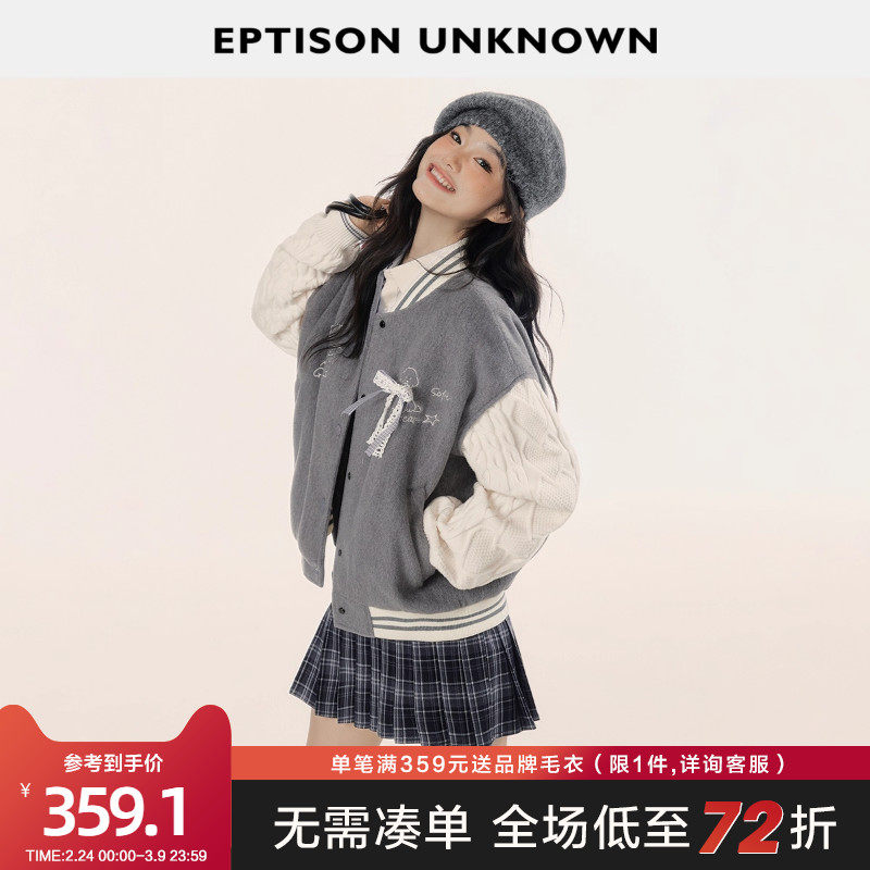 EPTISON夹棉外套女2025年冬新款复古小个子设计感短款毛呢棒球服