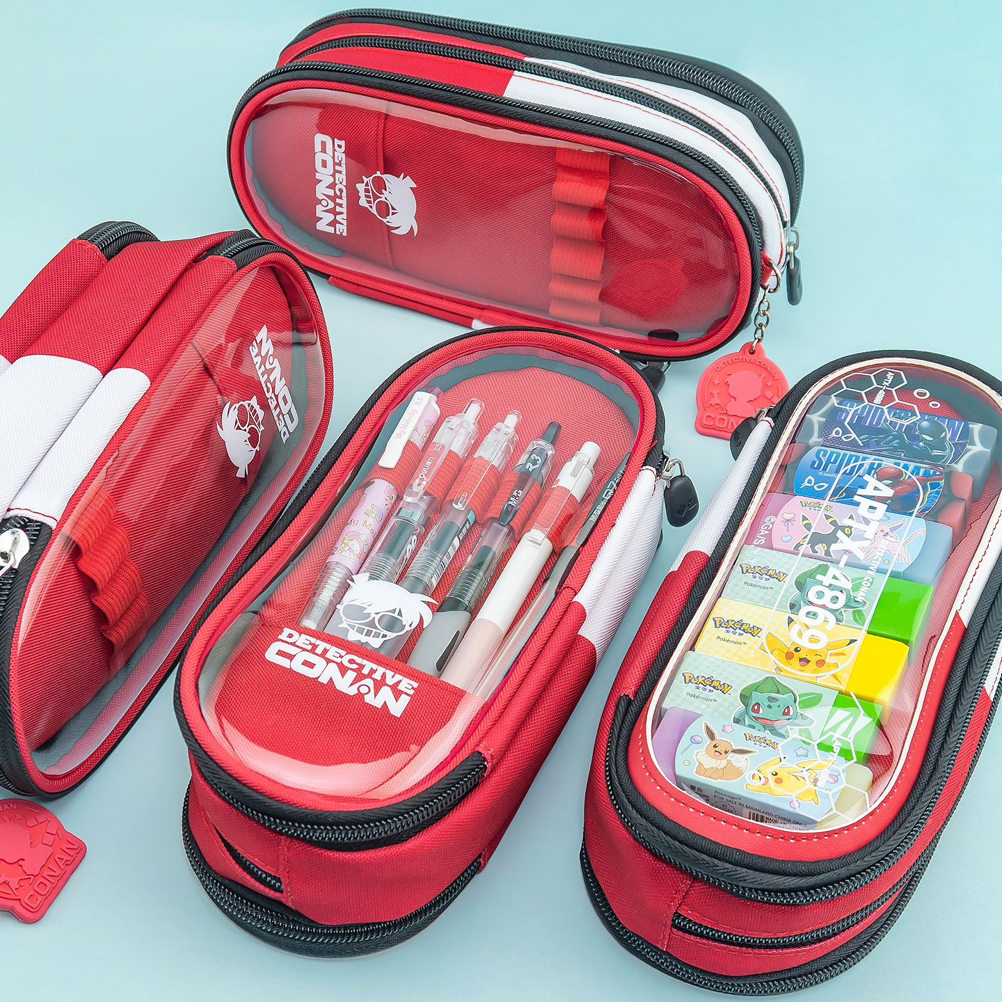 一正名侦探柯南药丸笔袋二次元大容量三层笔盒文具收纳袋胶囊新款中小学生文具盒卡通动漫柯南联名透明痛包