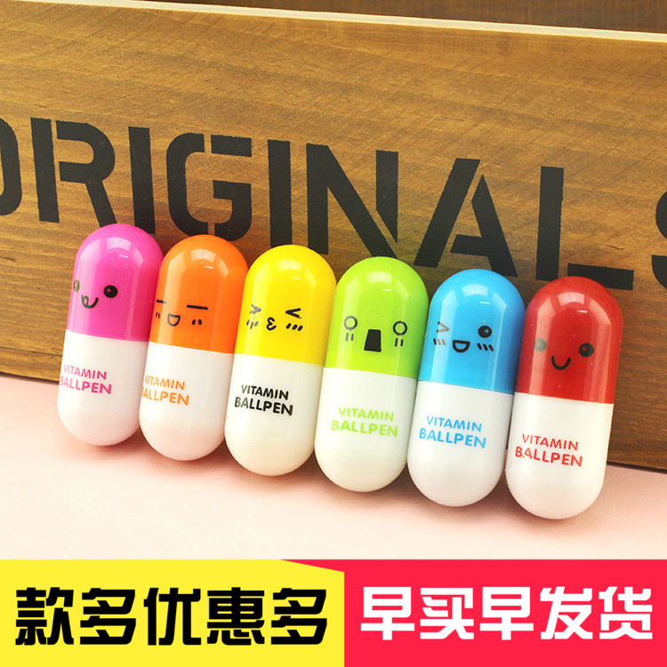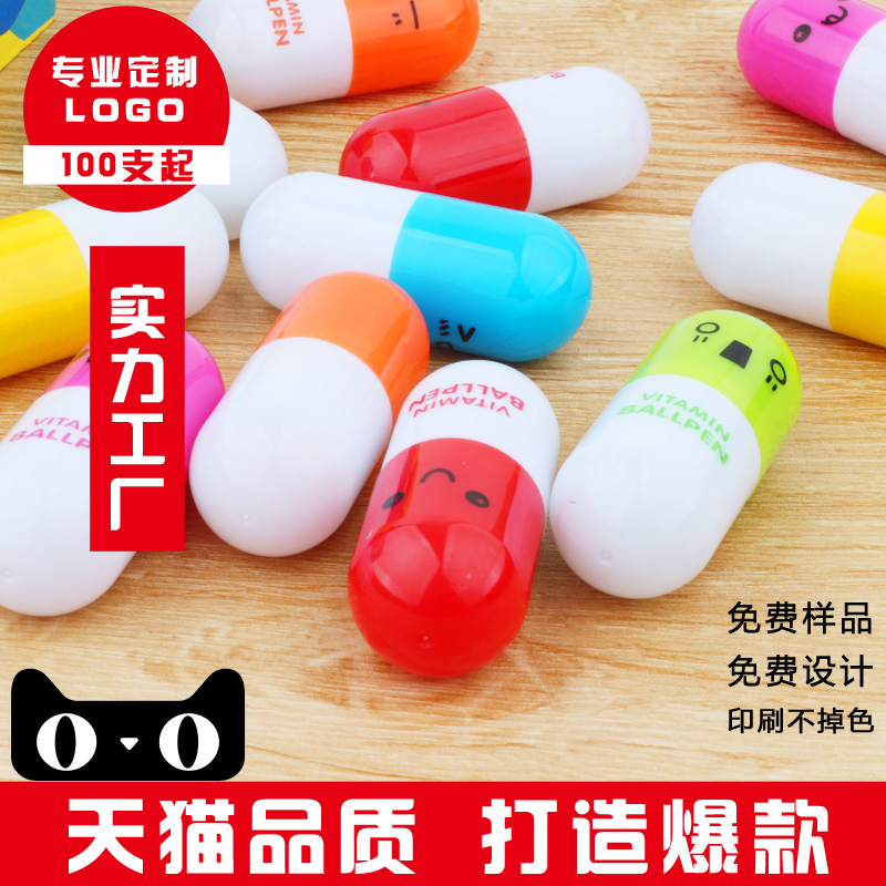 韩国创意文具发批小学生奖品可爱圆珠笔学习用品胶囊药丸笔印logo