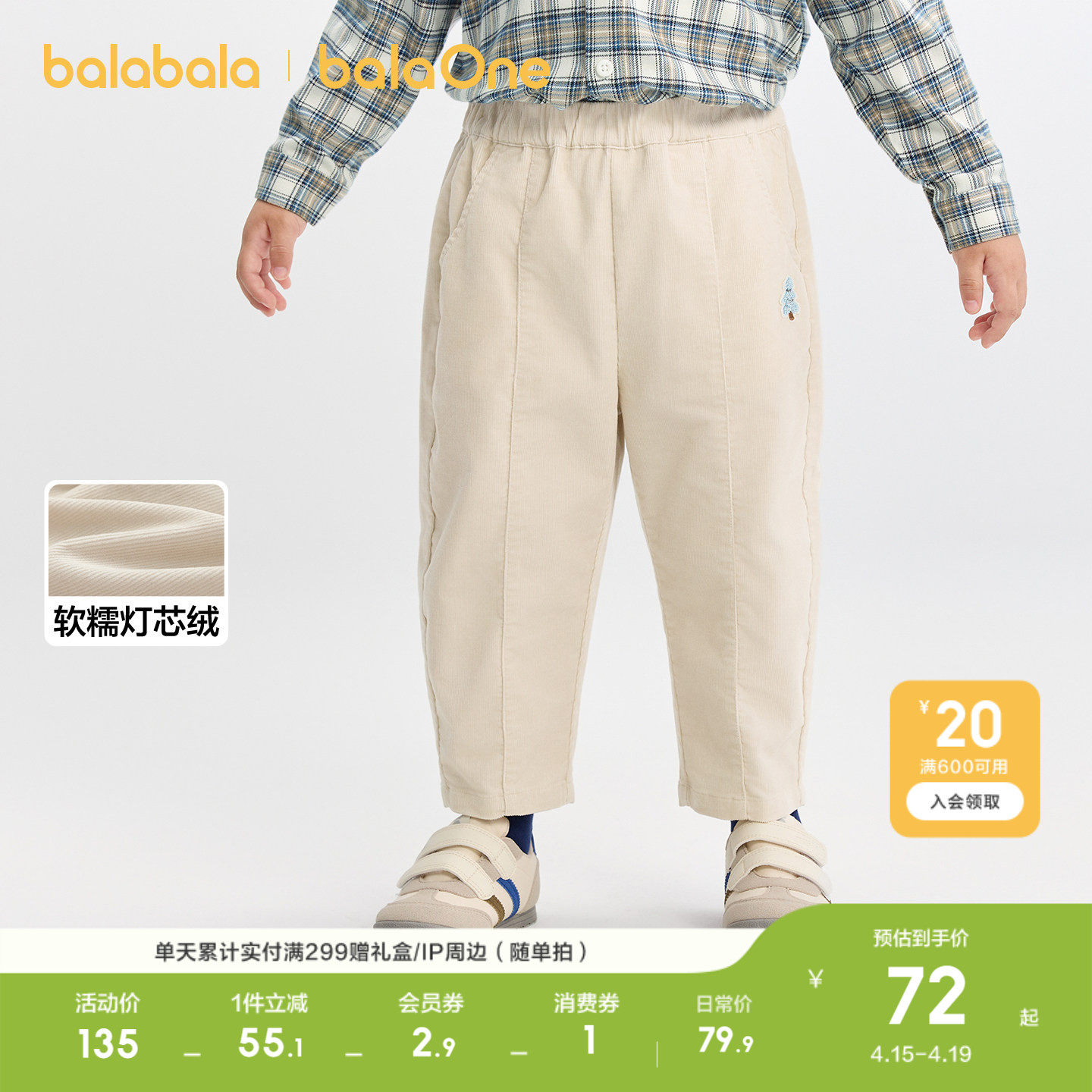 巴拉巴拉童装宝宝长裤男童宽松萝卜裤灯芯绒2026春装休闲小童裤子