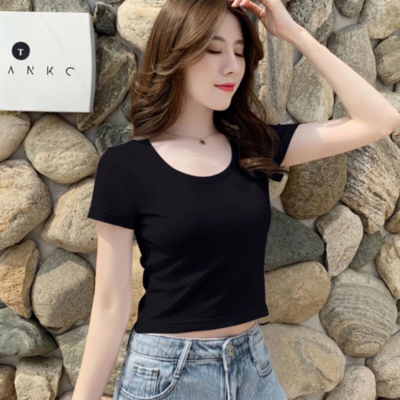 - 纯色紧身t恤 女 短袖