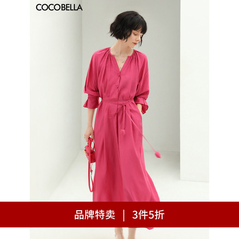 【3件5折】COCOBELLA玫瑰花苞腰绳捏褶衬衫裙夏多巴胺连衣裙FR169