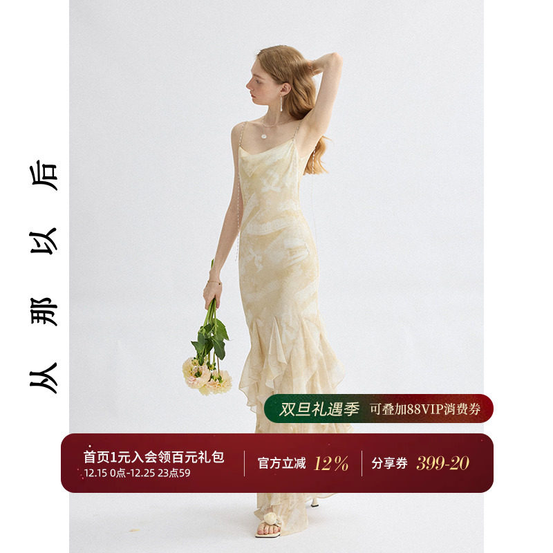 从那以后法式裙子吊带裙度假风荷叶边连衣裙高级感长裙不规则裙夏