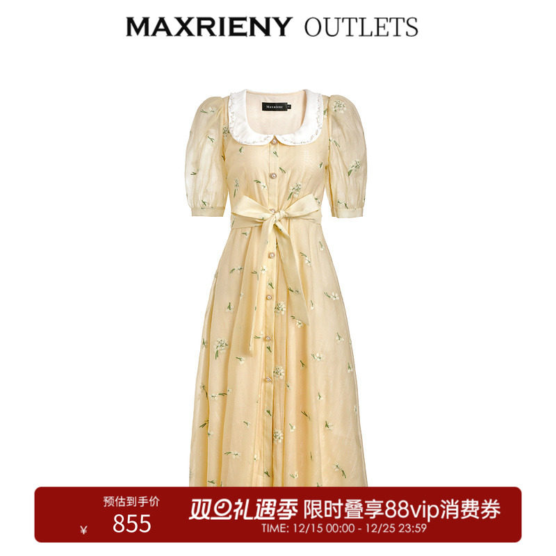 【奥莱】MAXRIENY风铃花娃娃茶歇裙夏复古短袖蕾丝连衣裙