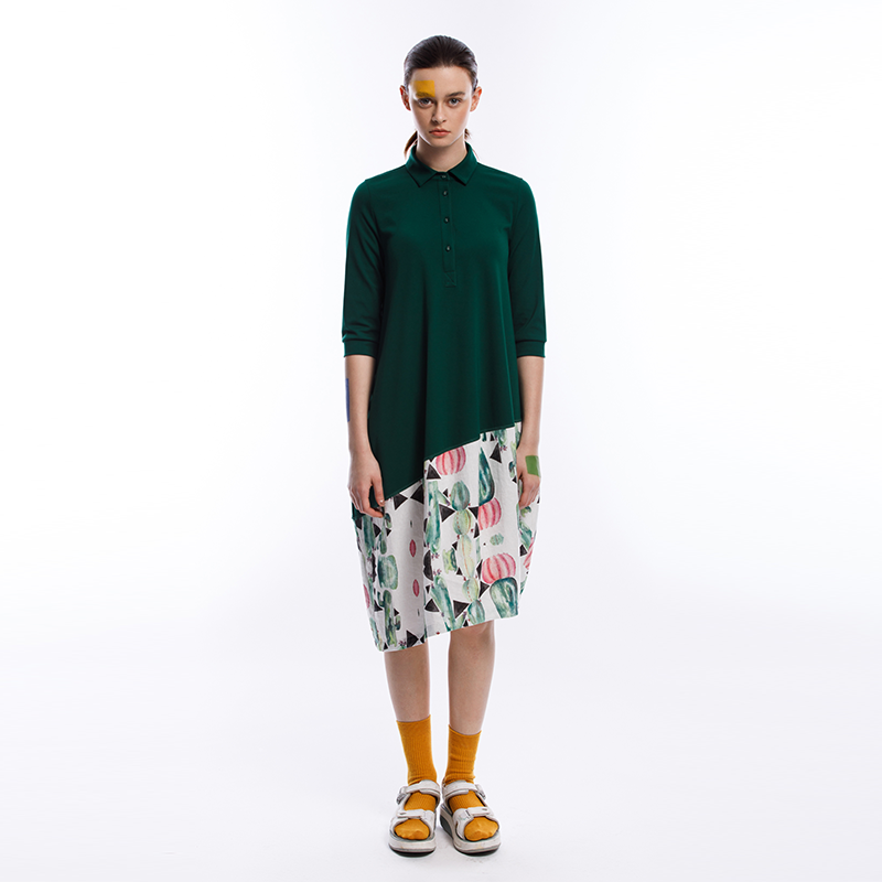 方寸原创不对称拼接休闲连衣裙女宽松中长款时尚针织短袖衬衫裙夏