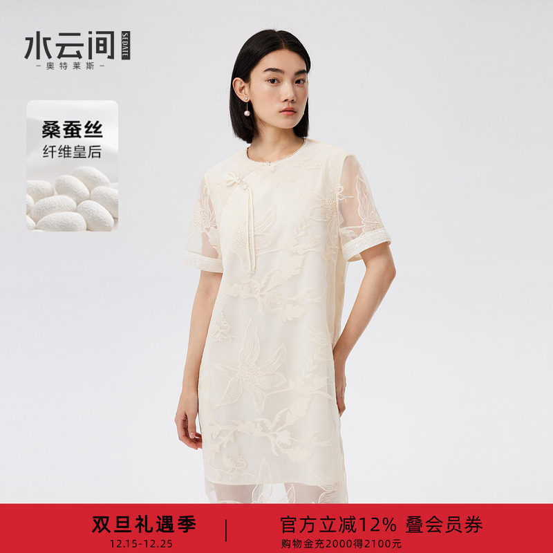 水云间新中式旗袍改良连衣裙女国风刺绣H型裙子薄纱优雅小礼裙夏