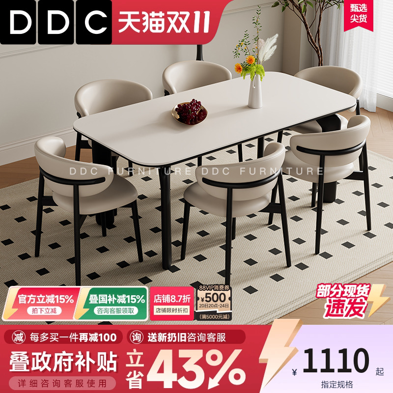 DDC岩板餐桌椅组合家用小户型简约高级感方桌子25新款餐桌椅饭桌