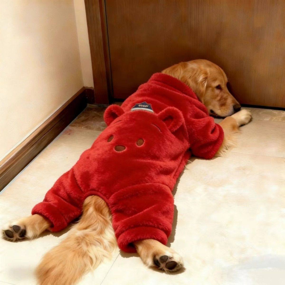 狗狗衣服秋冬新年红立体小熊四脚衣大型犬金毛萨摩耶巨贵拉布拉多