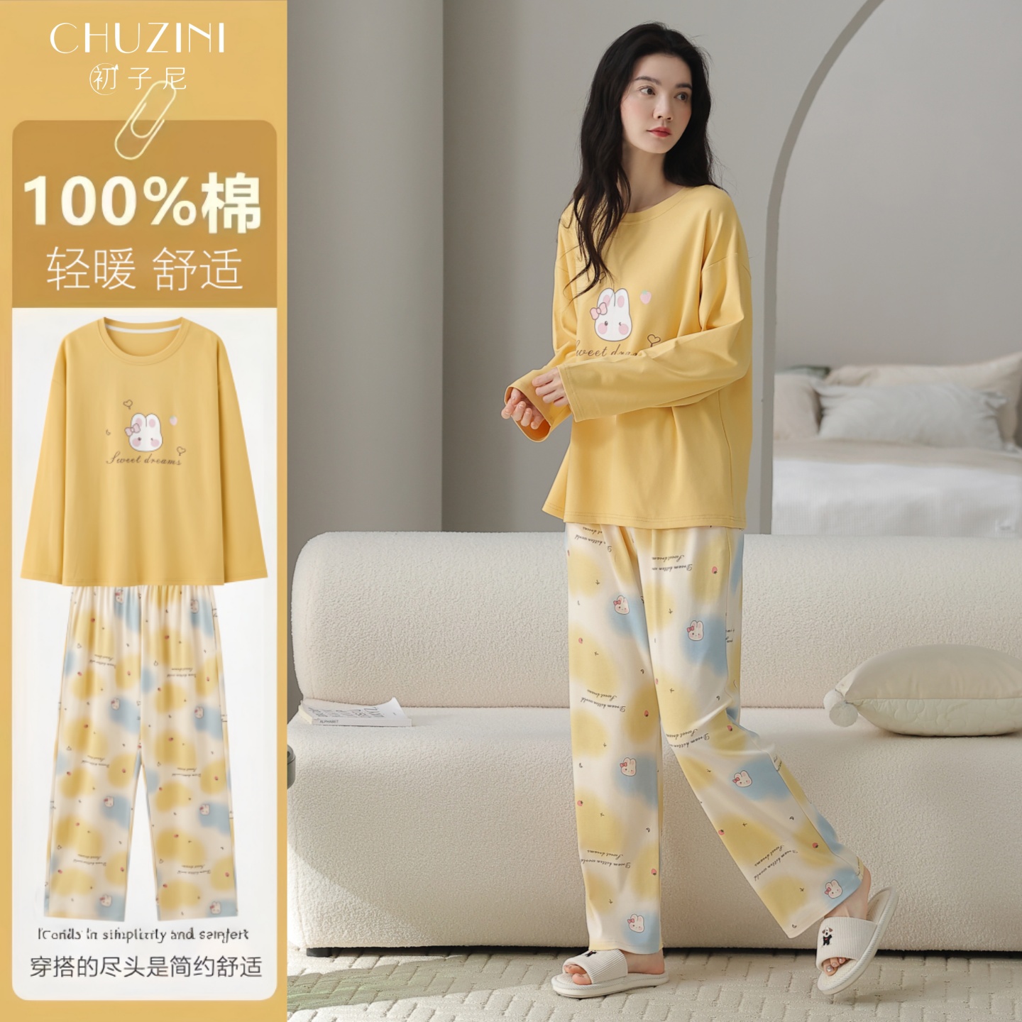 睡衣女秋冬纯棉长袖套头甜美可爱2025款全棉宽松可外穿家居服套装