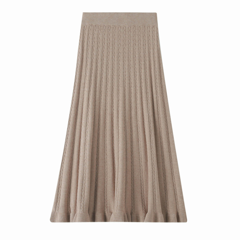 复古麻花针织半身裙女高腰垂感保暖大摆伞裙中长款A字裙秋冬新款