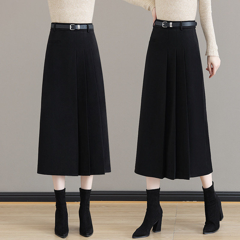 毛呢半身裙女2025新款高腰显瘦时尚百搭a字裙秋冬款长裙百褶裙潮