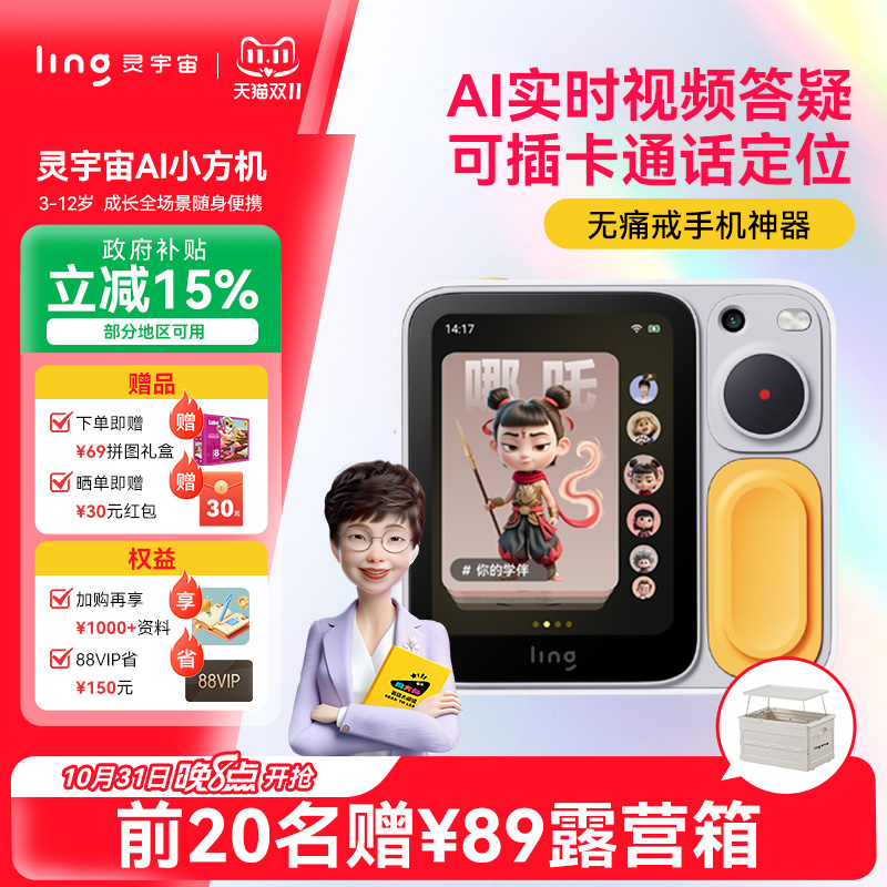 ling灵宇宙AI学伴小方机学习手机能看会讲智能对话儿童手机启蒙教育礼物幼儿小学生可拍照视频聊天故事机