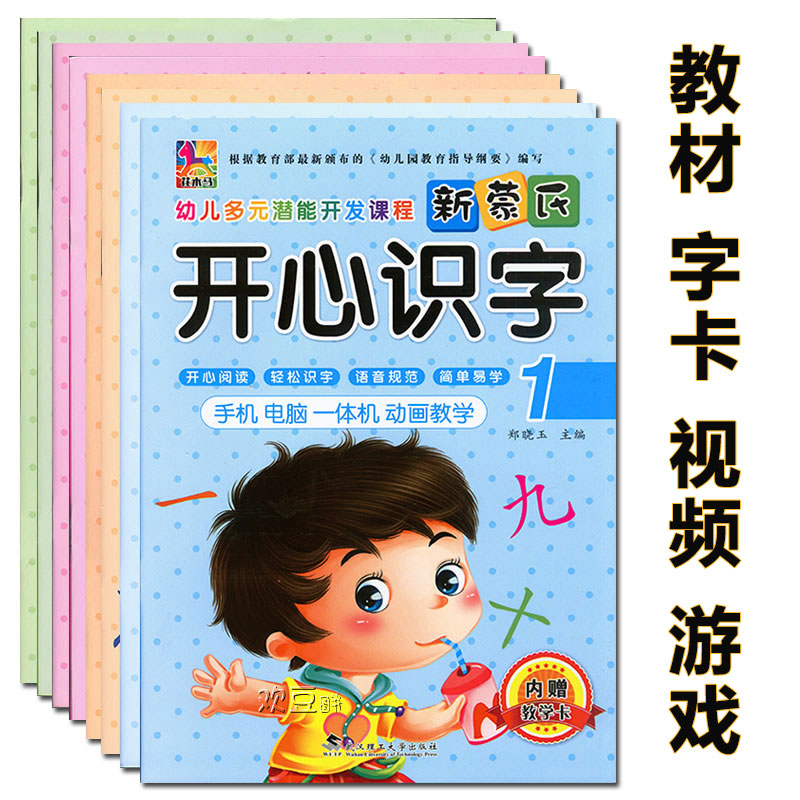 花木马新蒙氏开心识字教材卡片小中大学前班 一体机视频课件 幼儿园教材儿童学前阅读与识字儿歌故事书