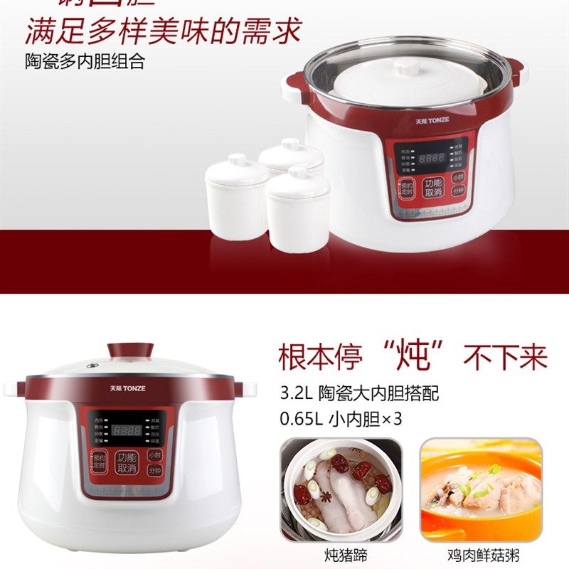 天际DGD32-32CG 不锈钢隔水电炖锅 全自动白瓷煲汤锅电用一锅四胆