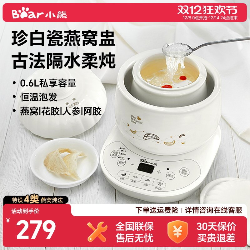 小熊电炖盅隔水炖家用全自动婴儿辅食燕窝炖锅陶瓷煮粥煲汤炖汤锅