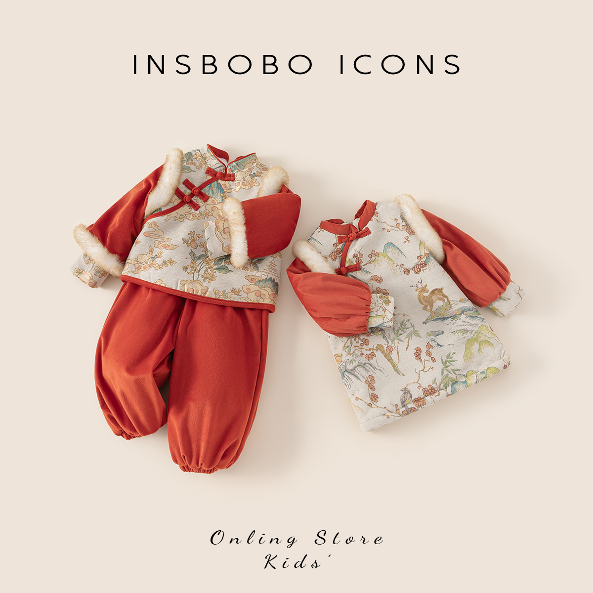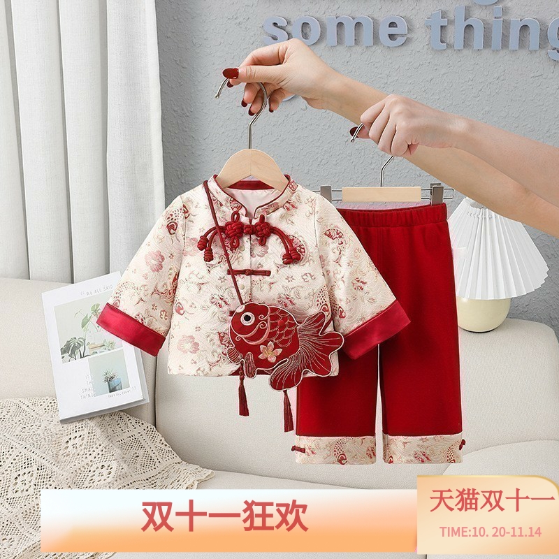 儿童唐装秋冬男童中国风套装女宝宝童装百岁抓周衣服婴儿周岁礼服