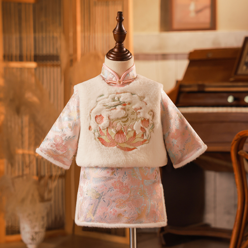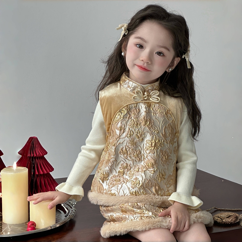 班喜迪女童旗袍裙秋冬装周岁女宝宝礼服儿童汉服裙子冬季国风唐装