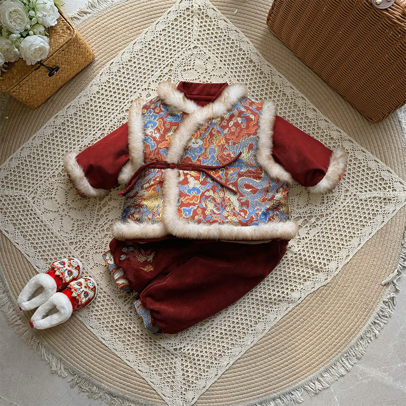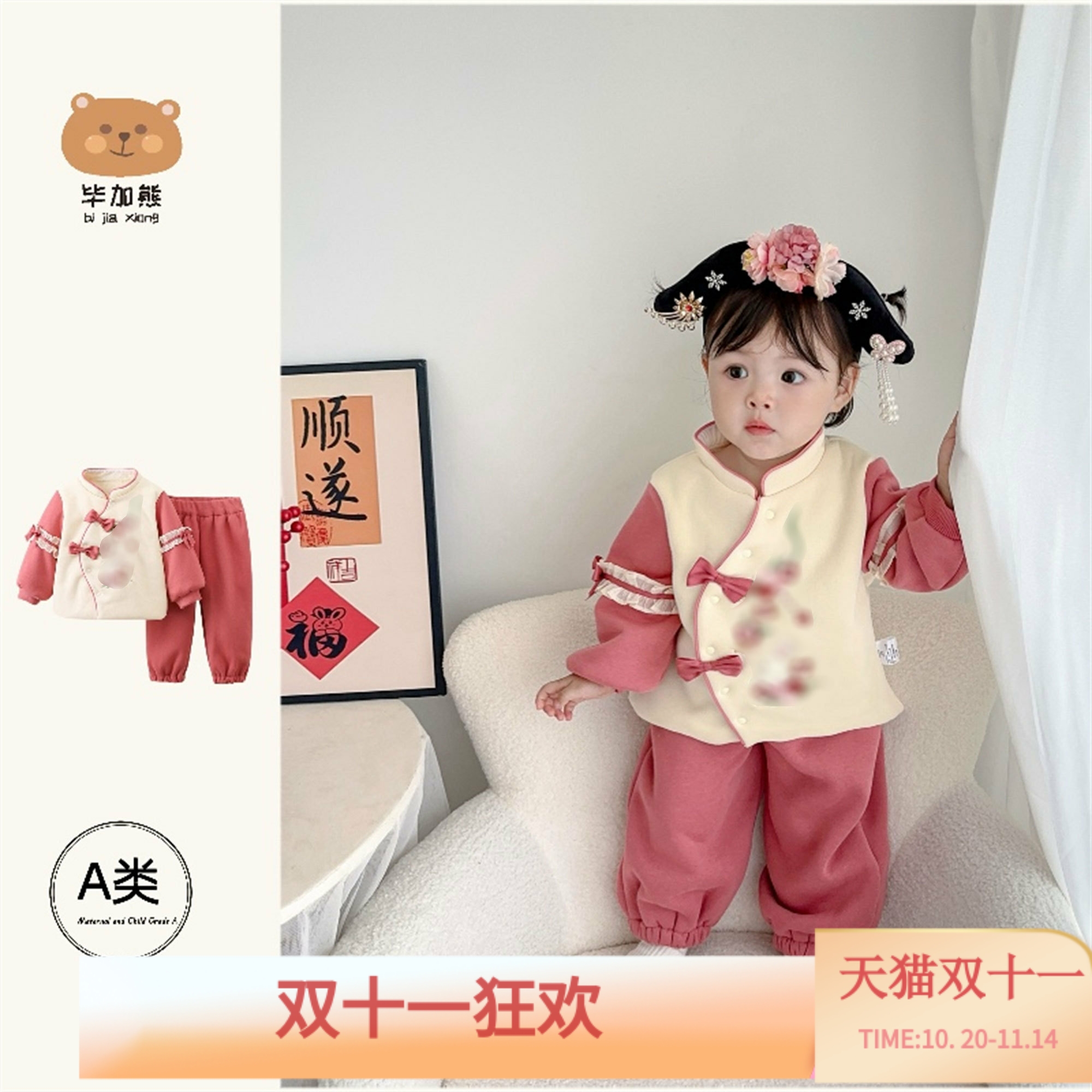 班喜迪女童汉服套装秋冬装女宝宝周岁礼服儿童中国风唐装冬季衣服