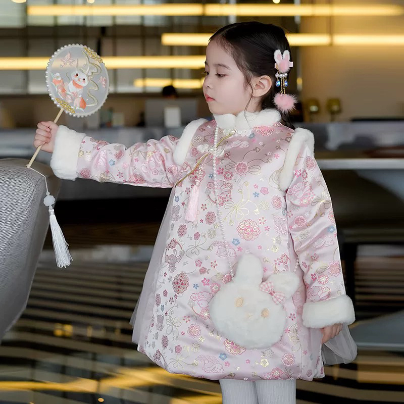 贝贝城女童汉服冬季新款儿童唐装周岁女宝宝礼服裙小女孩国风套装