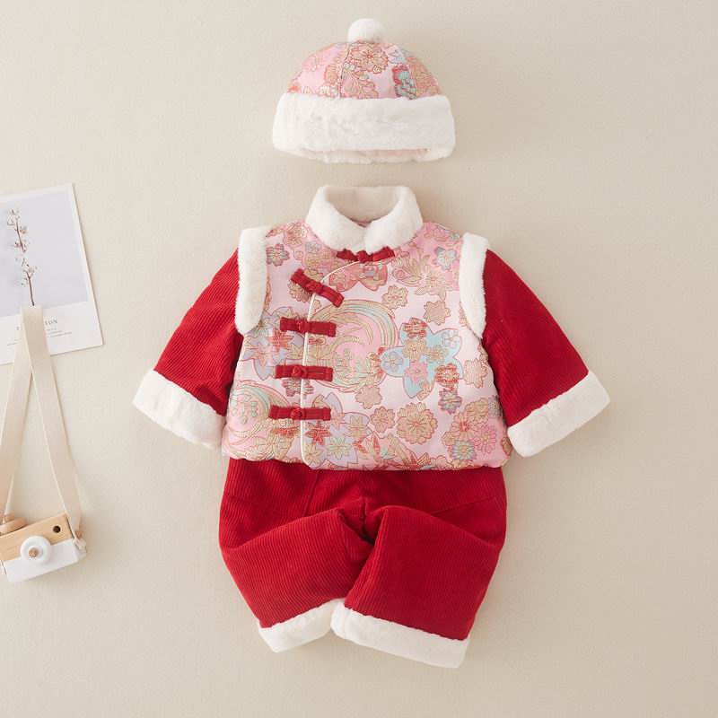 女童唐装婴儿冬装女宝宝周岁礼服中国风拜年服新年装分体两件套装