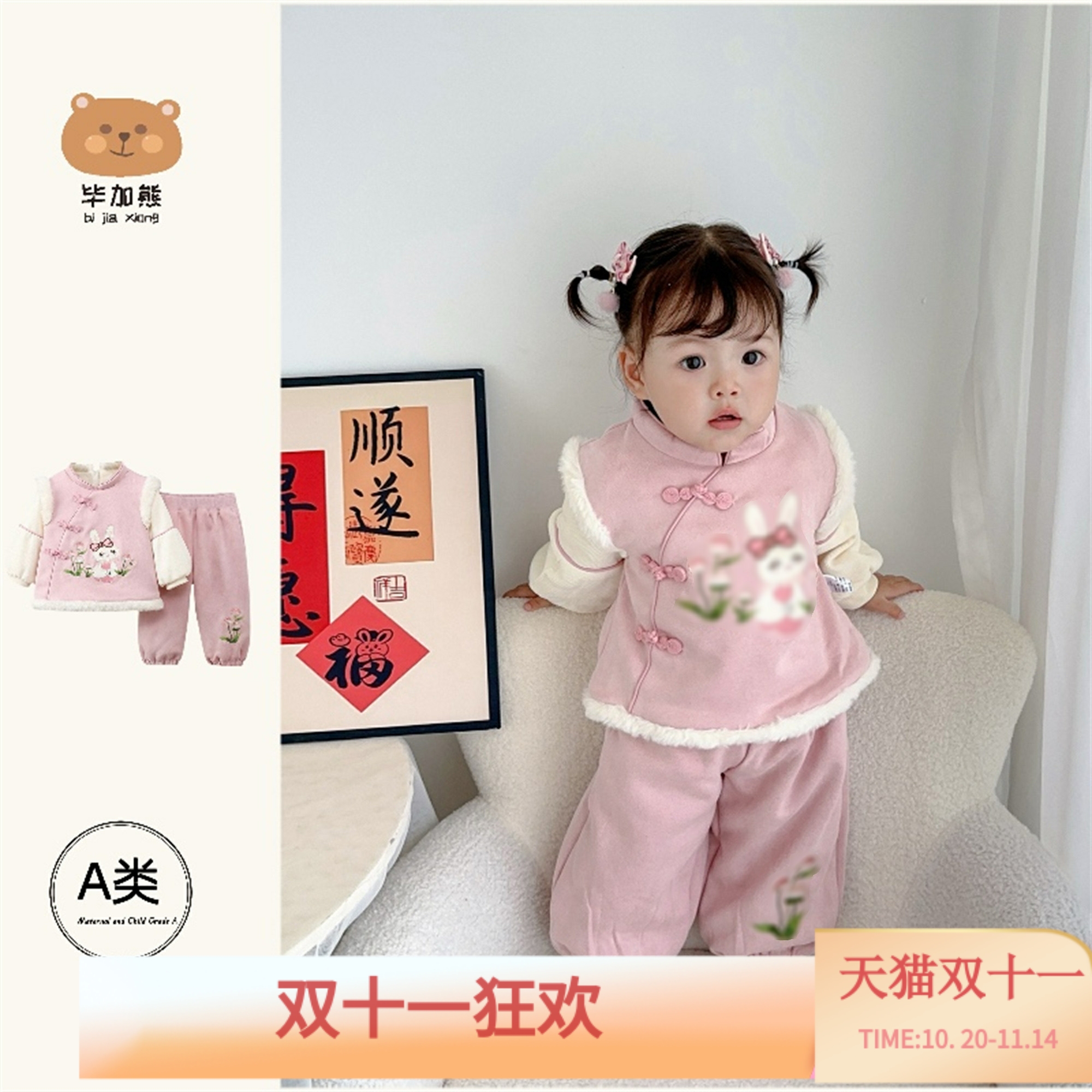 女童唐装儿童拜年服女宝宝周岁礼服婴儿冬季中式过年分体两件套装