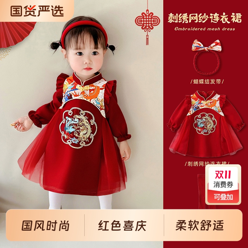 周岁女宝宝礼服秋冬连衣裙女童衣服抓周宴唐装婴儿喜庆新中式裙子
