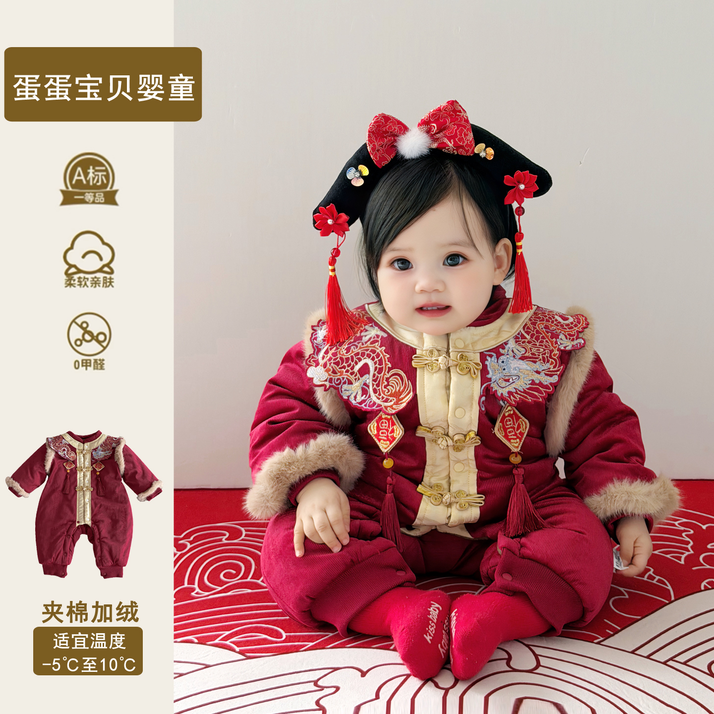 婴儿衣服女宝宝冬装连体唐装公主满月百天周岁礼服喜庆拜年服冬季